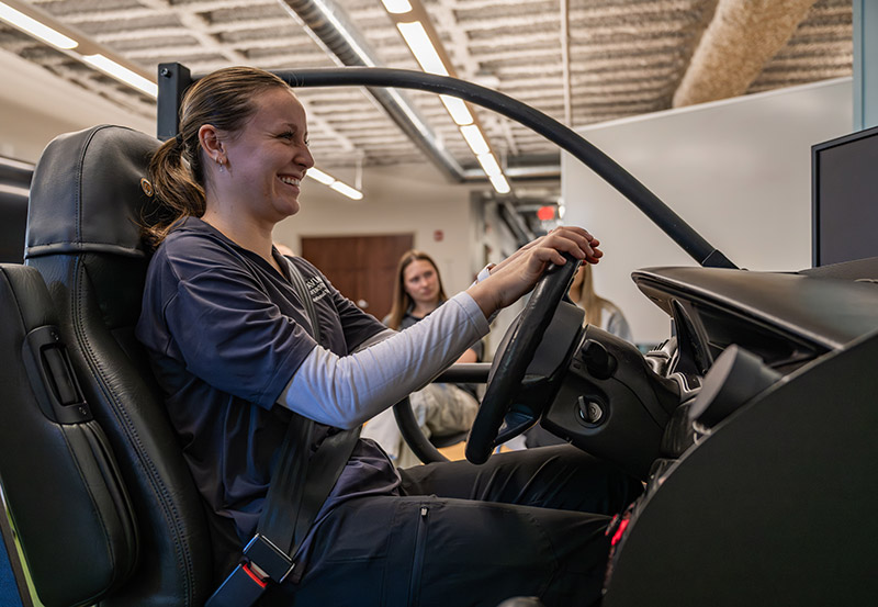 Step into the driver’s seat at Moravian University. Our realistic driving simulator lets occupational therapy students practice assessing and supporting patients’ physical, cognitive, and visual skills in a near real-world environment. From rehab clinics to schools, students learn how to screen and refer clients, explore the role of a driving rehabilitation specialist, and bring classroom lessons to life—preparing them to make an immediate impact in the field. The simulator is also available to students in the Speech-Language pathology master’s program.