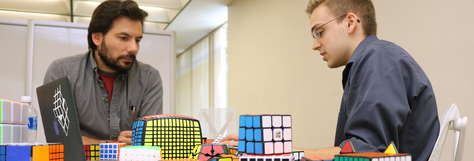 I have been solving Rubik’s Cubes for many years now. When Dr. Hartshorn and I were looking for SOAR ideas, I pitched a variation of Rubik’s Cubes called bandaged cubes (the ones with tape on them). My background in twisty puzzle theory and his knowledge in abstract algebra made it seem like a good topic to tackle, and so we decided to conduct research.
