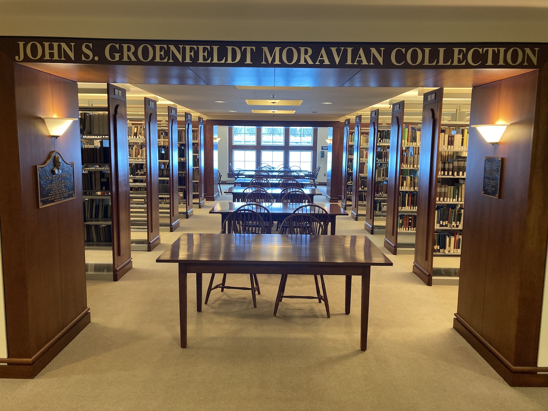 The Groenfeldt Collection or “Moravian Collection” as it is sometimes referred to, is a comprehensive selection of published works relating to Moravian history, theology, worship and mission. The Groenfeldt Collection is housed on the lower level of the Reeves Library and includes many books in English, as well as other languages such as German and Czech. The following bibliographies highlight some of the holdings in the Groenfeldt collection: