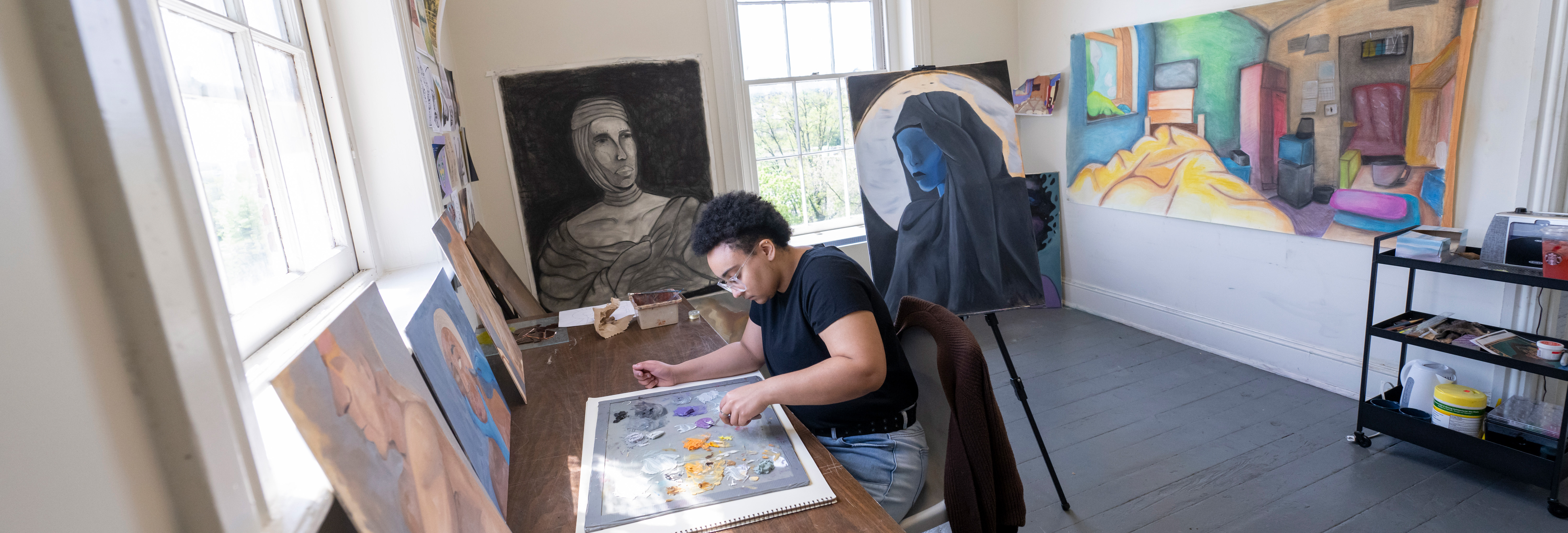 Working at the forefront of new approaches to teaching, learning, and technology, the Art Department is grounded in strong traditional foundations. Our program lays the groundwork for students to integrate and appreciate art throughout their lives, and encourages leadership in their field as well as the global community. Under the mentorship of our outstanding faculty, our students are provided with a strong, personalized academic major, combined with innovative hands-on learning experiences and opportunities for community engagement and collaboration. The Art Department is committed to providing professional opportunities through our: