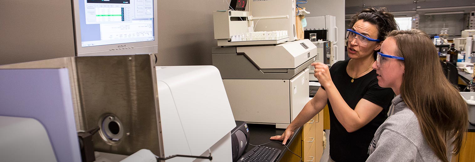 Taylor Blake '16 working on an experiment with her faculty mentor