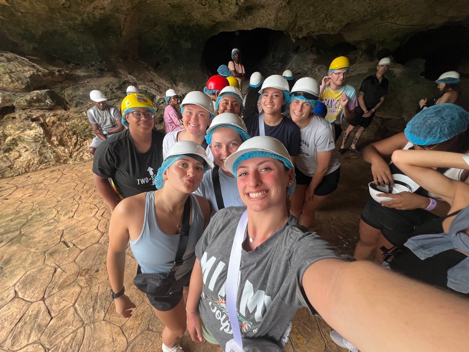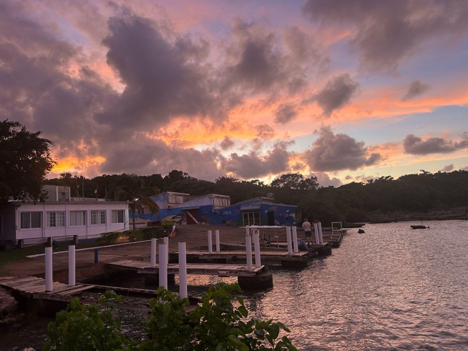 Today was our last full day in Jamaica. Over the 10 days we have experienced so much and today we got to as well! Our day started by going to breakfast. After breakfast, as a group, we went out for one last snorkel. We decided to go to the place where all of us first learned to snorkel, the blue maze. It was so fun returning since we did not snorkel here as much as the boardwalk. Afterward, we spent the rest of our time before lunch out at the docks tanning together! After lunch, we then got to go to Green Grotto Caves where we got a tour of them. A James Bond movie was shot here which is pretty cool! It was a really neat experience and so fun! We had some down time once we got back from the caves before our final dinner together. Dinner tonight was jerk chicken which we all had been anticipating the whole trip. Once dinner was over it was time to head over to the conference room so we could watch our group projects together. On the way over we got to see probably the best sunset of this whole trip! All the groups did such an amazing job on their group project and it was so cool to see what everyone was up to throughout this trip! I’m going to miss Jamaica and everyone who went on this trip. It was such an amazing experience that I’ll never forget!