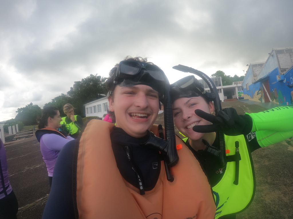 Today was our last day at the Discovery Bay Marine Lab. We had an eventful day with waking up bright and early to heavy rainfall hitting the roofs of our dorm. After running around to make sure we got our stuff off of the balcony to ensure it stayed dry, we went down to eat breakfast. For breakfast this morning, we had pancakes, scrambled eggs, plantains, bacon, and pineapple with pineapple orange juice. They also served some sort of porridge. After breakfast we had our final snorkel where we all wanted to snorkel in the blue maze. While snorkeling we saw so many different fish and we even saw two barracudas! After our snorkel we all laid out to tan for our final tanning experience as a group. After tanning we got up, took a quick shower, got ready for the day, and then went down for lunch. For lunch today we had fried pieces of cassava and some sort of fish with some cucumbers and tomatoes on the side. Once we all finished lunch, we were off to the Green Grotto Caves! Going to the Green Grotto Caves was such a cool experience where we got to see bats, explore the ins and outs of the cave, and even made a quick little stop at the gift shop at the end where almost everyone bought something. After the caves, we headed back to DBML, got ready for dinner, and for dinner we had jerk chicken, potato salad, and veggies. After dinner we watched some of the sunset, headed to the conference room, and watched our final video presentations and did the photo contest. Overall we had such an amazing trip while here in Jamaica and I am so grateful that we all got the chance to have the experience of a lifetime and make lifelong friends and memories along the way.