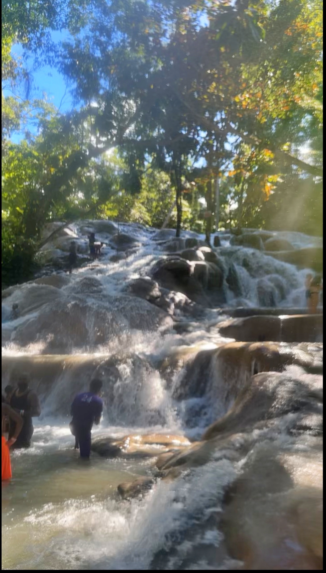 Hashim: When we got to the lunch spots, we split into two groups—some went to Pizza Hut, and others to KFC. I was in the KFC group. While I’m not usually a fan of fast food, this meal brought a familiar comfort, a taste of home, since it’s food we see every day as Americans. After lunch, we headed to Dunn’s River Falls, a highlight of the trip that I’d been looking forward to for a long time. It did not disappoint—the views were absolutely breathtaking. It’s easily one of the most beautiful places I’ve ever seen. We spent a couple of hours climbing the waterfalls, enjoying the cool water, and then relaxed at the beach located right at the base of the falls. Afterward, we treated ourselves to some ice cream before heading back to campus. Once there, we got ready for dinner. The chefs, as always, prepared an incredible meal for us. Later that evening, we played a fun group game, which was the perfect way to wind down before bed.