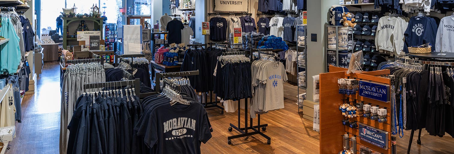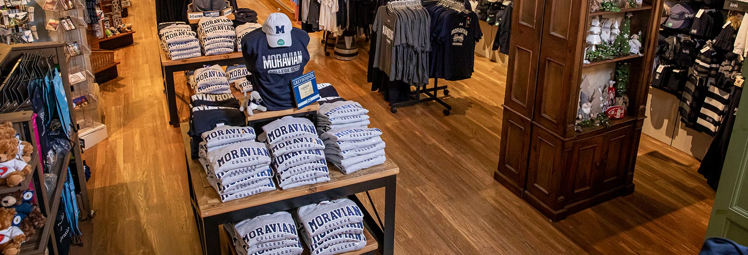 The Book Shop provides a unique downtown location to gather with classmates, shop for textbooks and Moravian gear, grab a snack, and be part of the greater Bethlehem community. A shuttle stop has been added in front of the building on Main Street to make it convenient for students living on the Main Street campus. Pop-up book stores will be available on the Main Street campus during key times when books are purchased and returned, as well as during events like Senior Select Day, Summer FAIR and Accepted Students Days.