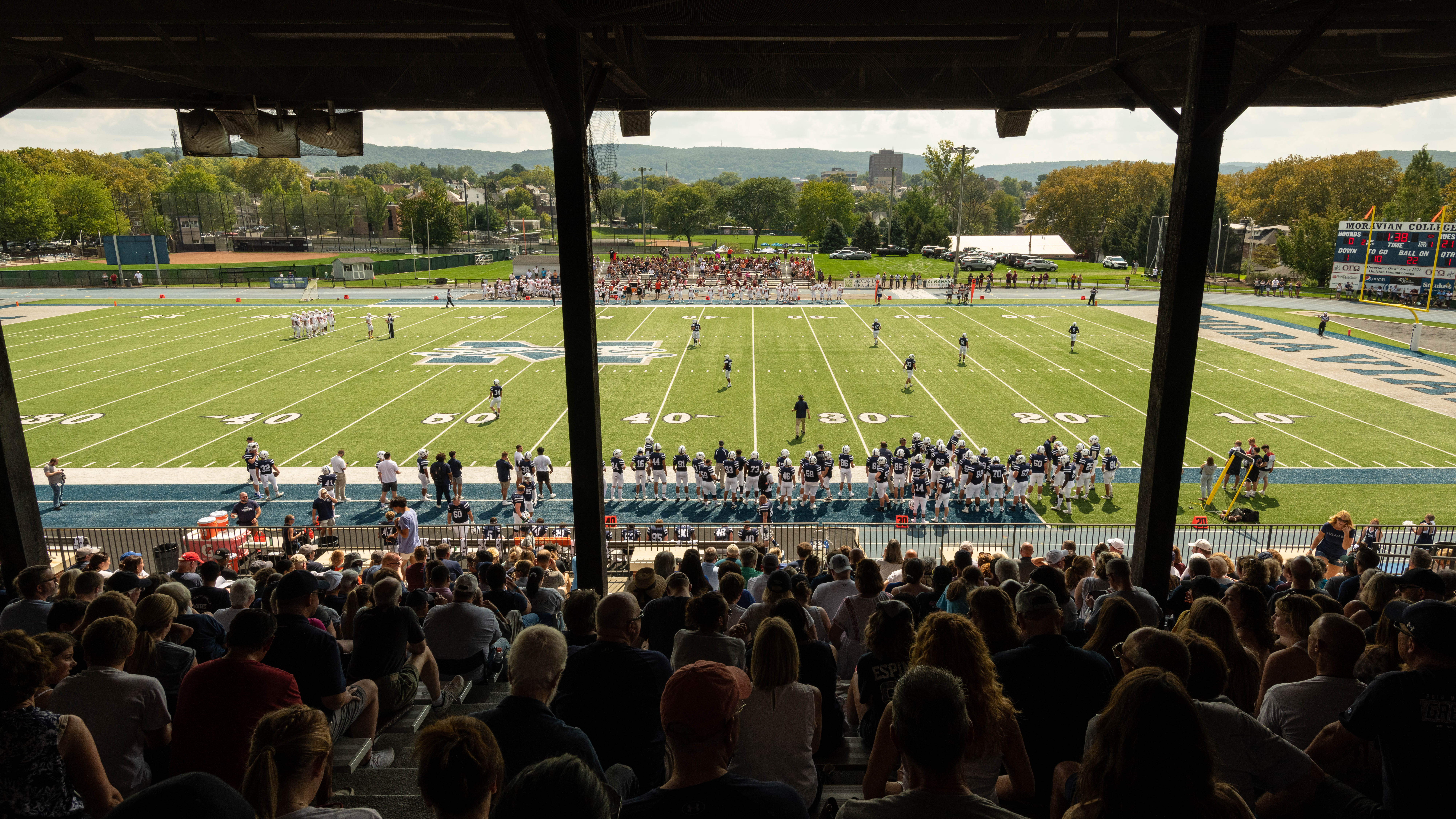 Sponsorships at several levels are honored with a personalized plaque affixed to the back of a seat; for details, go to moravian.edu/johnstonbleachers.
