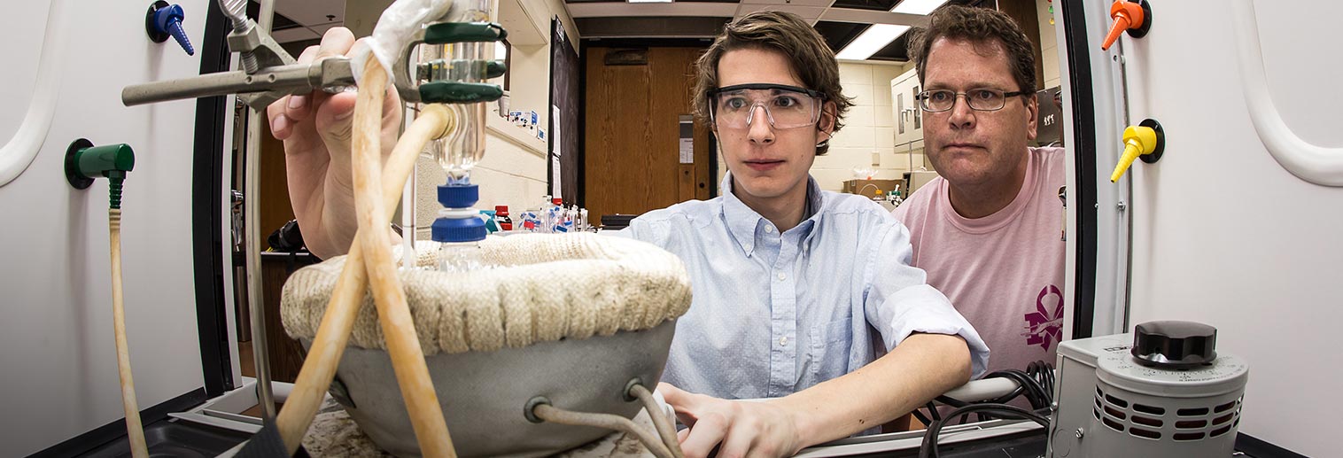 The chemistry major at Moravian University provides you with a fundamental understanding of chemical concepts and their application to current problems. Beginning in the general chemistry course and throughout the curriculum, you'll explore chemical principles by carrying out experiments using modern chemical instruments. You'll receive hands-on experience with analytical techniques such as optical and infrared spectroscopy, gas chromatography, and NMR. You may choose to work with faculty members on research projects in theoretical chemistry, analytical chemistry, physical chemistry, organic chemistry, or biochemistry. The American Chemical Society approved the department's chemistry program, and we offer coursework and research experience leading to an ACS-certified B.S. in chemistry.