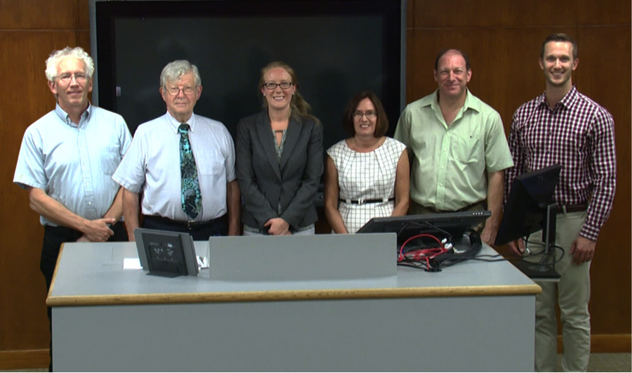 What happens when you put six organic chemists in a room and give them a video camera? This past summer, assistant professor Michael Bertucci and five other chemistry professors from other LVAIC (Lehigh Valley Association of Independent Colleges) institutions collaborated on developing a hybrid course in medicinal chemistry. Blended or hybrid learning is a pedagogical technique that is emerging nationally in both secondary and higher education. It combines technology with traditional classroom methods, allowing students to engage with online videos, simulations, activities, etc. to introduce or augment content presented by the instructor. Funded by a grant from the Teagle Foundation to encourage cross-institutional blended learning, the team of six prepared and recorded a series of online modules (or video lectures) on a variety of topics, individually or as a duo, depending on their area of expertise. In total, 27 modules were created covering topics ranging from the drug development process to status reports in pharmaceutical interventions for cancer, infectious disease (i.e. – bacterial infections and viruses), and Alzheimer’s disease.