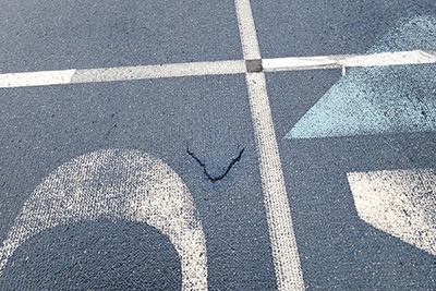 The track continues to peel and split, especially near the end of the first turn, which is becoming a tripping hazard. Grass grows out of the seams between lanes, which is unsightly for recruits to see. The repairs to the track will create a consistent surface without tripping hazards and the unappealing weeds growing in the middle of the turn.