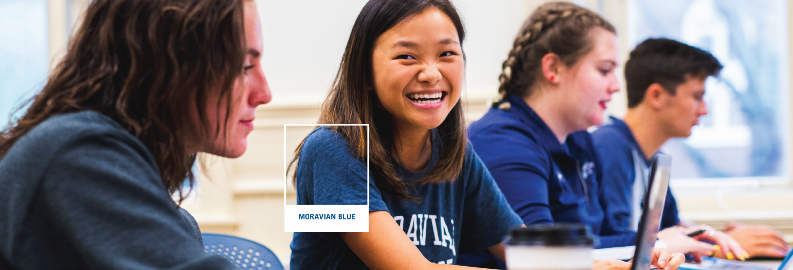 Moravian Blue and Grey are the primary colors of the University’s identity. The secondary blues and greys should always be paired with Moravian Blue. All formal communication materials should, whenever possible, use these colors.