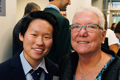 Maggie Jones ’20 attends the campaign kickoff celebration with her mother.