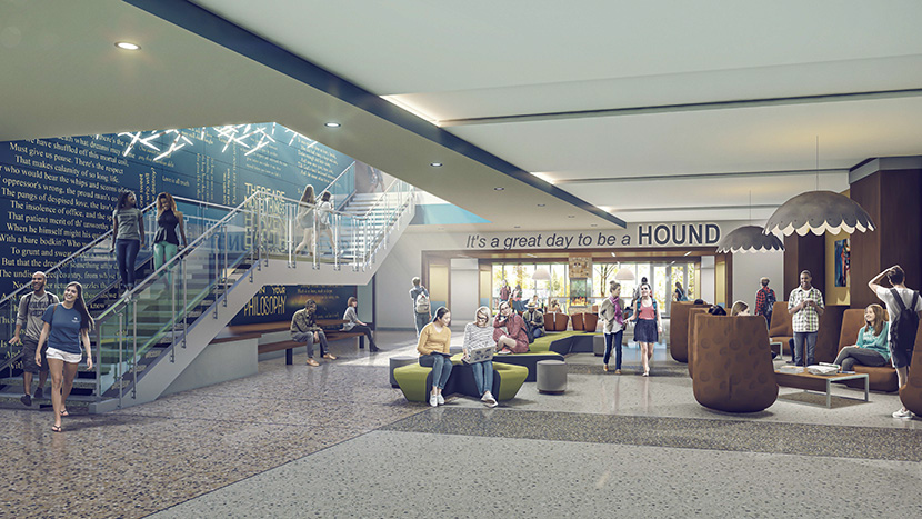 Flicker has been involved in the development process and has added his own touches to the plans, including featuring leadership-based quotes throughout the space to inspire students who will pass through daily. “I think it's a good spot to put the word ‘leadership’ on the wall, to have people begin to focus on what they think is a good leader and to try to become good leaders themselves,” he says. “I think a liberal arts education, coupled with whatever your major is, gives you the ability to be a contributing member of a team. [It] teaches you to accept other people's opinions, to have open discussions, to be a better listener, and this builds trust. You want to be the kind of leader that people will want to follow because they trust you.”