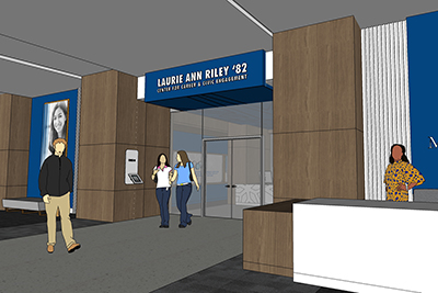 Developing future leaders was important to Laurie. After she passed, Lloyd sponsored the naming of the Center for Career & Civic Engagement in the expanded HUB in her memory. The Laurie Riley ’82 Center for Career Success will continue the mission of the current center by empowering students to develop the skills, experiences, confidence, and connections necessary to pursue fulfilling careers while remaining civically-minded in their personal and professional endeavors.