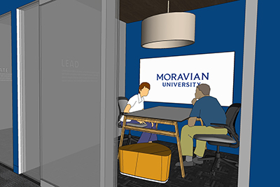 Flicker has made it his mission to prepare today’s workforce to adapt to challenges. He will leave his mark in the new and improved HUB by investing in the Robert P. Flicker ’71 Leadership Suite, a 1500-square-foot space dedicated to student organizations and clubs. The suite will offer two areas for student groups to gather—one will be an open common area, and the other will have closed-door privacy. Lockers will provide storage space. The suite will also allow student leadership groups, the Moravian Activities Council and the United Student Government, to centralize their offices together for the first time.