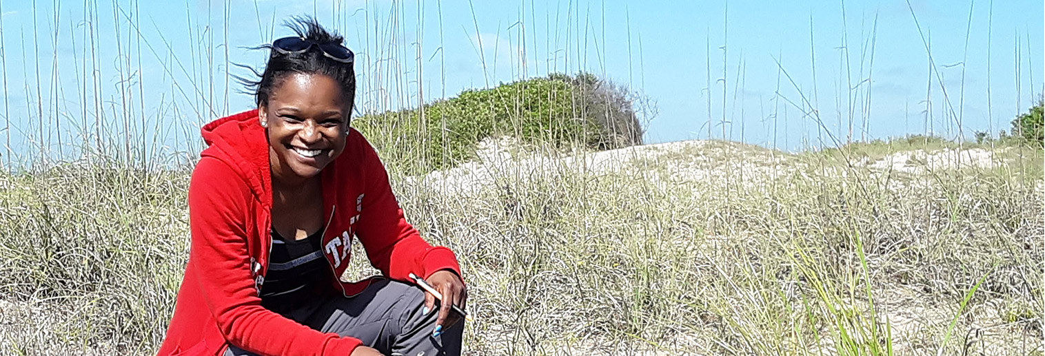 Dr. Woods recently was awarded a Building Research Capacity grant, BRC-BIO-Diverse Undergraduate Research Students in Ecology (DURSiE), from the National Science Foundation. Dr. Woods plans to extend her current research on Hog Island and examine the impact of accelerated storm disturbance on shrub encroachment into grasslands on Hog Island. Dr. Woods wants to give students who have been systemically underrepresented in the field of ecology an opportunity to conduct field research. She is looking forward to taking Moravian University students to conduct this research on Hog Island. Dr. Woods and some of her collaborators highlight the role of mentors and institutions in increasing representation in the STEM pathway in a recent paper, “The Intersections of Identity and Persistence for Retention in Ecology and Environmental Biology with Personal Narratives from Black Women”, published in the Journal of Geoscience Education. She is dedicated to creating a shift in representation in the fields of ecology and environmental science. Dr. Woods is on the steering committee for the RCN-UBE-The Undergraduate Network for Increasing Diversity of Ecologists (UNIDE).