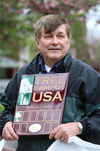 At the Arbor Day tree planting on April 27, Frank Kuserk, professor of biology share the good news that Moravian University has earned 2015 Tree Campus USA recognition. Tree Campus USA, a national program launched in 2008 by the Arbor Day Foundation, honors colleges and universities and their leaders for promoting healthy trees and engaging students and staff in the spirit of conservation. To obtain this distinction, Moravian University has met the five core standards for sustainable campus forestry required by Tree Campus USA, including establishment of a tree advisory committee, evidence of a campus tree-care plan, dedicated annual expenditures for its campus tree program, an Arbor Day observance and the sponsorship of student service-learning projects.