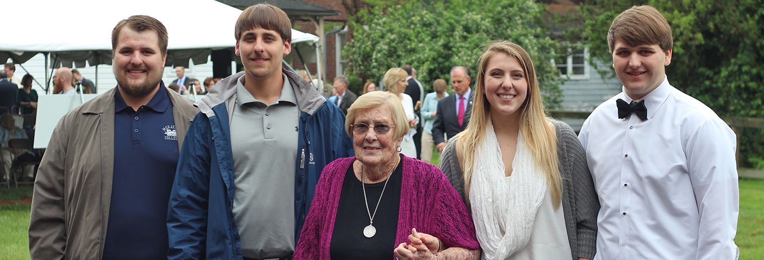 The rain that had fallen earlier in the day on Friday the 13th of May did not dampen spirits at the ground-breaking ceremony for the Sally Breidegam Miksiewicz Center for Health Sciences, and in fact, it was a blessing—softening the soil for the symbolic turning of the first shovelfuls of sod at the site of the future building. The event saw a full house of attendees (a full tent to be more accurate), which included Helen Breidegam and daughter Sally Breidegam Miksiewicz’s children—Dan ‘14, Katelyn ’16, Matt ‘18, and Tim--as well as representatives from our outstanding building and design team: JG Petrucci, Iron Hill Construction Management, and the architectural design firm Earl Swensson Associates (ESa).