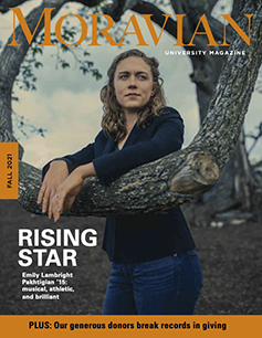 You will also read about one of our many alumni who demonstrates the continued value of a liberal arts education. Emily Lambright Pakhtigian '15 is now an assistant professor in the School of Public Policy at Penn State University and is continuing the Moravian tradition of transforming lives. Lastly, we had a record year in total giving and total number of donors. As a way of recognizing the continued generosity and dedication of our supporters, we have established a lifetime giving society, the Via Lucis Society.