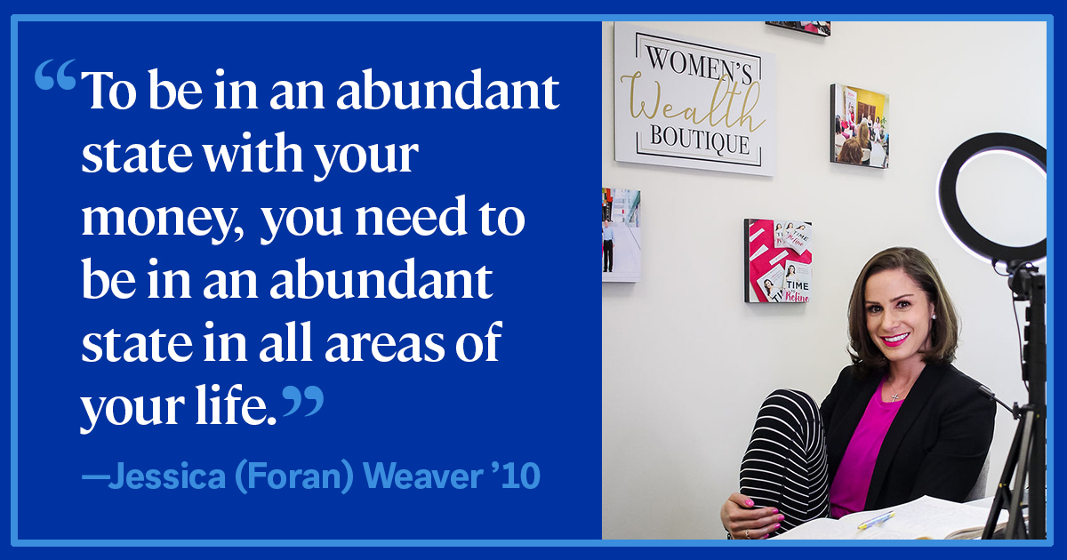 Women’s Wealth Boutique, based in Chester, New Jersey, where Weaver resides with her husband, fellow Hound Eric Weaver ’10, serves as a one-stop shop for women to gain control of their money with the help of Weaver’s all-female team.