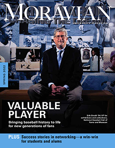 You will also meet Erik Strohl '94, the vice president for exhibitions and collections at the National Baseball Hall of Fame and Museum, gain insight on supply chain management with June Slawinski Youngs '79, and learn how attorney Nina DePalma '17 and other members of the Moravian community are advancing legal representation for those who face eviction and its devastating consequences.