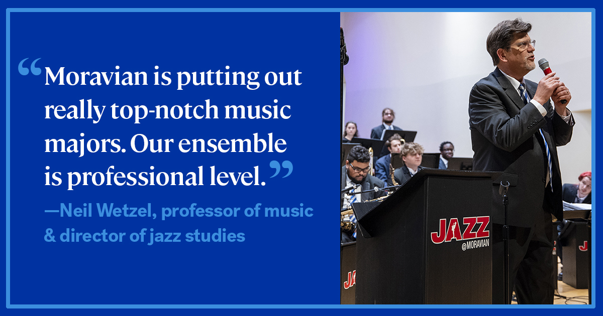 “Moravian is putting out really top-notch music majors,” Wetzel says. “Our ensemble is professional level.” Universe City proves there’s no hyperbole in that statement.