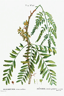 Enter the academic quad behind Memorial Hall, and you’ll find yourself under the light, feathery canopy of honey locusts with their pinnately compound leaves. Robert Snyder, an assistant to former Moravian president Raymond S. Haupert, who oversaw nearly every position at the college, had a passion for trees. He donated more than a dozen to Moravian, including the two honey locusts behind Memorial Hall, which he planted for his daughters, Margaret and Sally. Six additional honey locusts grace the quad. The tree is native to Pennsylvania, and according to the Arbor Day Foundation, it derives its name from the sweet honeylike liquid in its pods.