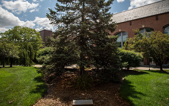 Just to the right of the back entrance to Colonial Hall stands a sugar maple planted in 1982 in honor of novelist John Updike, winner of multiple awards (including two Pulitzers) who twice spoke on campus. Updike grew up in Shillington, Pennsylvania, outside of Reading. At his boyhood home, his parents planted a dogwood tree the year after he was born. Believing it to be the same age as he, Updike felt a kinship with that dogwood, and as an adult, he penned the autobiographical essay “The Dogwood Tree: A Boyhood.” In it he writes: “When I was born, my parents and my mother’s parents planted a dogwood tree in the side yard of the large white house in which we lived throughout my boyhood. This tree...was, in a sense, me.”