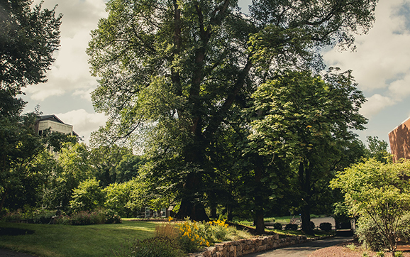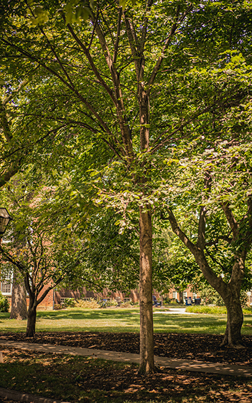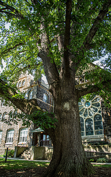 Moravian University is home to more than 1,200 trees with an asset value totaling almost $9 million. They beautify the campus, soothe the soul, clean the air, and offer lessons to our students. Some are recently planted. One took root in the 18th century. Many are memorial trees. All are magnificent inhabitants of the landscape. Here, several of our most notable trees and the stories surrounding them. You can use their common names to locate them on the map in the university’s tree inventory (mrvn.co/treeinventorymap).