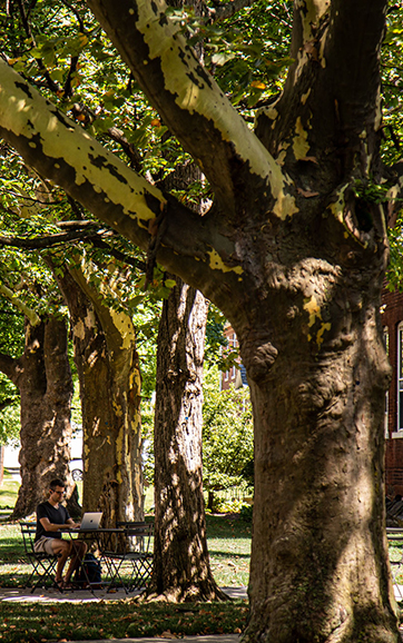Stand at the 1742 emblem on Laurel Street and look into the academic quad. You’ll see a neat row of sycamore trees stretching north to Elizabeth Avenue. Monocacy Street once ran right through campus, and these sycamores stood sentinel at its side. Today, Monocacy runs north from the edge of campus at Elizabeth and south from the HUB.
