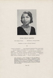 Martin was the first Black woman to graduate from Moravian (the first Black man graduated from Moravian College and Theological Seminary in 1898). In 1970, she was the first recipient of the Raymond S. Haupert Humanitarian Award given by the university’s alumni association to honor an alumna or alumnus who has rendered outstanding service in the cause of human welfare. In 1991, the alumni association awarded Martin the Comenius Award, given in recognition of outstanding achievement or service in an alumna’s or alumnus’s field of work. This is the association’s lifetime achievement award.