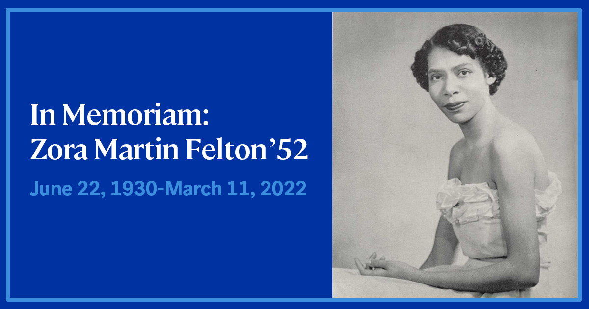 Zora Martin Felton died on March 11, 2022, at age 91, predeceased by her husband of 47 years, Edward P. Felton Jr., and leaving behind three children and 14 grandchildren.