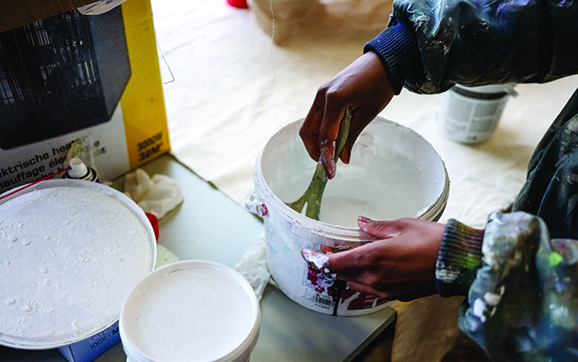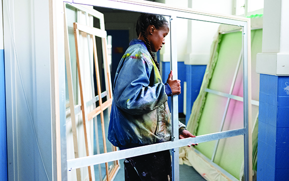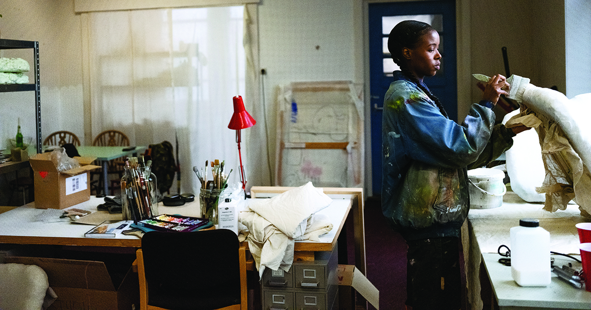 She also ran track and field, excelling as a hurdler, and that rigor carried over to her art. “When I made art, I found I could push myself further, work very long hours because I had the discipline track had given me—how to be uncomfortable and work through something. Track also gave me this flow state, which I sometimes get when I’m doing art.” But it wasn’t always easy to be a Black woman with a globe-spanning history in a majority-white environment. Langa’s high school was racially and ethnically diverse; Moravian was a sharp contrast. “The first year, I wondered if it was a good fit for me.”