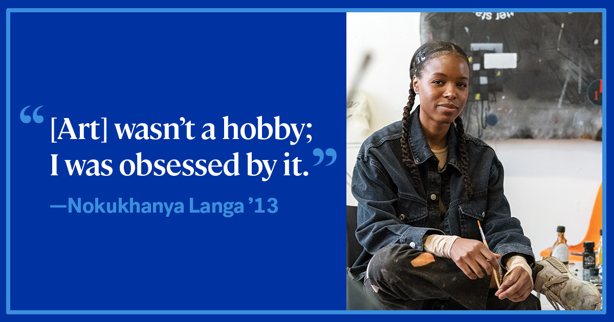As a child, Nokukhanya Langa ’13 decorated rocks with crayons and got her hands sticky with papier-mâché. After school, she scrambled to the classroom chalkboard to draw spokes of yellow sun radiating down on kid-renditions of people.