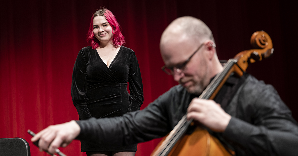 Her alter ego, the bass player, has performed on the upright and electric bass in pit orchestras and pit bands since eighth grade (while at Moravian, she performed with local high school musicals). Bassist Young hopes she can get picked up by a tour. Looking ahead long-term, she wants to become a conductor. “I love conducting and working with ensembles,” she says.