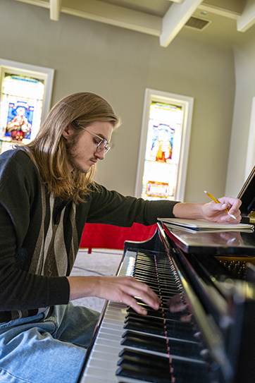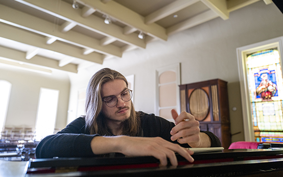 Anderson grew up in Effort, Pennsylvania, in the Poconos. His family has its roots in the Carpathian Mountains of Ukraine, from which his great-grandparents emigrated to the United States. A powerful connection to Ukraine formed in Anderson through his heritage and his church, St. Mary’s Ukrainian Orthodox Church in Allentown, established in the early 1900s largely due to the efforts of his great-grandfather. Anderson has attended mass at St. Mary’s with his family every Sunday since he was a baby. He still does today. The proximity to his church and his family and friends was a factor in his decision to choose Moravian. The quality of the music faculty and the intimate classes confirmed his choice.
