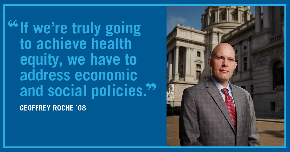 That experience shifted the way Roche thought about health and the barriers that make it hard for some people to thrive. It made him an advocate for public–private collaborations that engage all parts of the community—policy makers, law enforcement, educators, and faith-based leaders—in the pursuit of health equity.