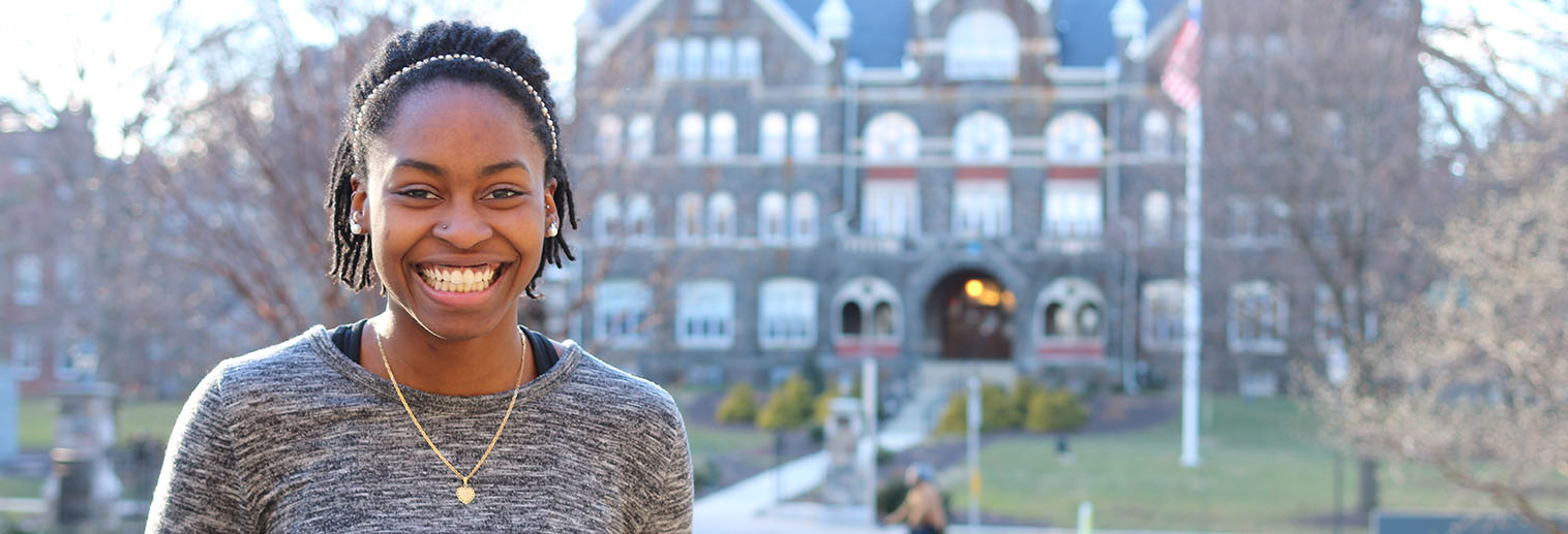 The emphasis on liberal arts has fed her hunger to explore diverse subjects while honing her focus on behavioral neuroscience with an eye toward becoming a sports psychologist. A track and field athlete, she competes in the long jump, 60 meters, 100, 200, 4 X 100, 4 X 200 and, “occasionally the 400, if the coach decides to torture me,” she says with a laugh. “This year we are adding the triple jump,” she adds excitedly. As an Orientation Leader she has been a mentor to fellow students, particularly first-year students.