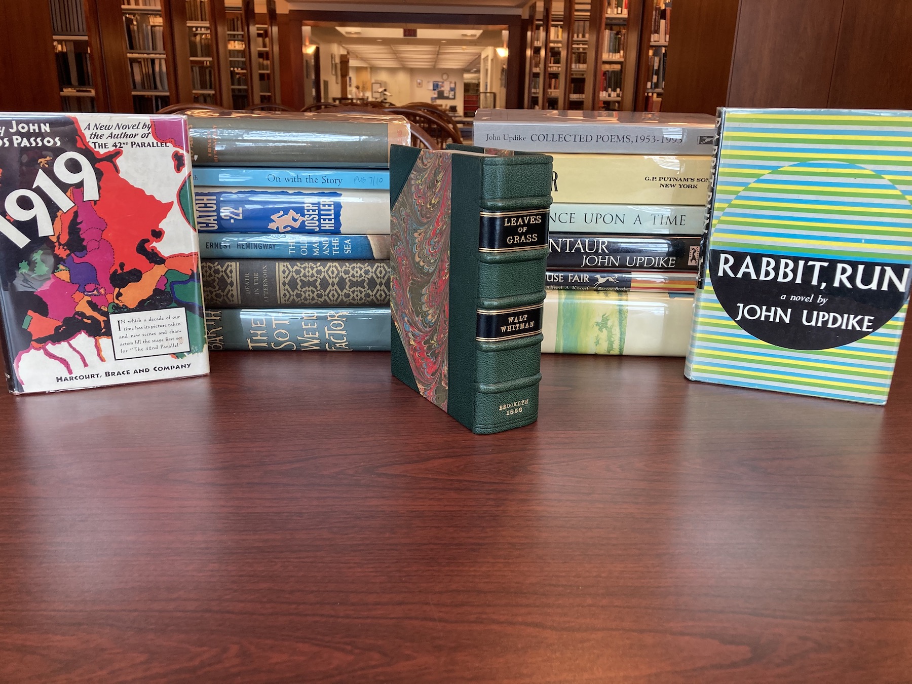 Reeves Library is pleased to announce the recent addition of the Eric Ruskoski Collection to its Rare Books Collection. This generous donation by Mr. Ruskoski, a college Alumni (class of 1969), features more than 170 rare and/or autographed first edition books by critically acclaimed American authors such as Walt Whitman, John Updike, Ernest Hemingway, Joseph Heller, and more.
